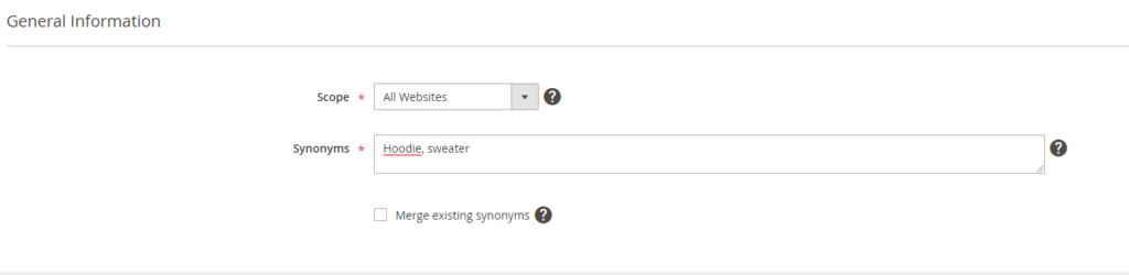Let wel op. Voeg alleen woorden toe die relevante synoniemen van elkaar zijn want alle synoniemen kunnen onderling gevonden worden. Als je bijvoorbeeld als synoniemen intypt “top, hoodie”, betekent dit dat zodra iemand zoekt op “hoodie”, hij/zij ook alle artikelen krijgt te zien die het woord “top” bevatten waaronder hemdjes en andere artikelen die minder relevant zijn.