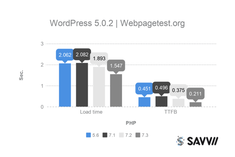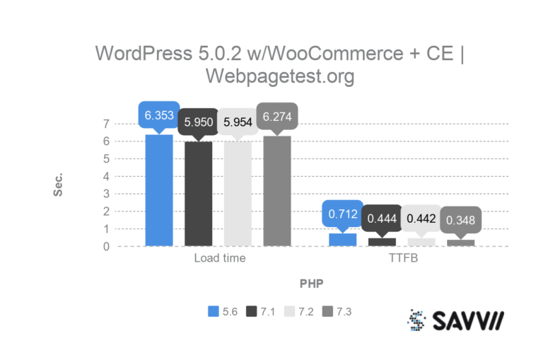 Het lijkt erop dat de WooCommerce plugin goed reageert op PHP 7.1. Met name de laadtijd van de pagina is goed wanneer PHP 7.1 gebruikt wordt. Kijken we naar TTFB en response tijd, dan is PHP 7.3 bij beide tests het snelst.